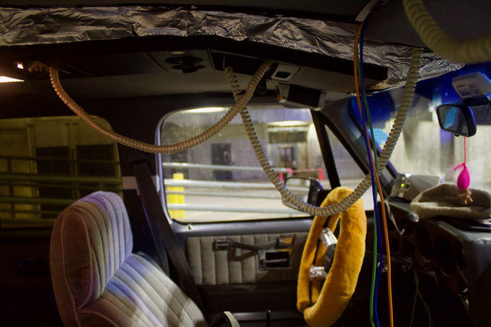 Sound used in this show was run off of QLab running off a laptop hidden in the center console of the 1990 Chevrolet Suburban, triggered via a MIDI controller by the driver seat actor, and was sent to 1990s computer monitors mounted on the dashboard. A boombox played cassette tapes, the voice of the Truck came over a walkie talkie from a voice actor in a car parked at a different site. A three-way phone call between the Truck, the actor playing the moon and the voice actor allowed for show feed to reach the other two actors. The baby unit of a baby monitor sat on the dash, and the parent unit was given to the people sitting in the back row of seats in the truck for added audibility.